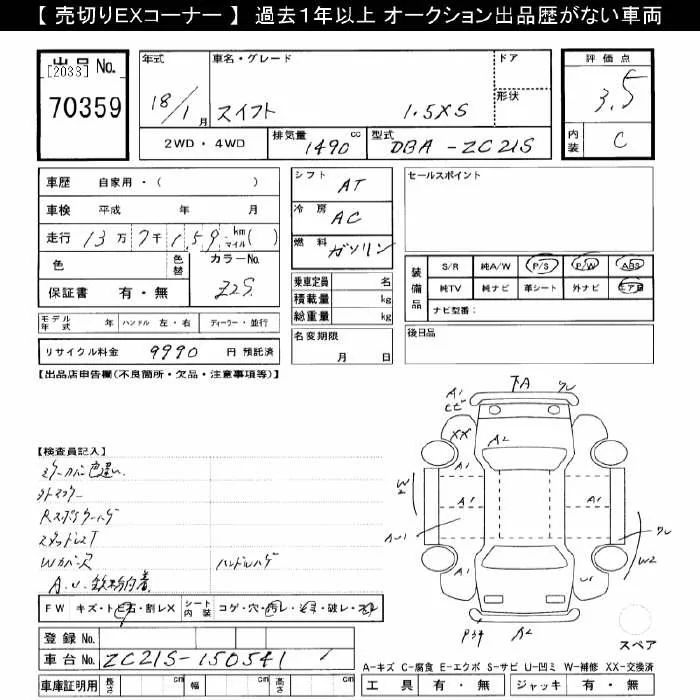 Suzuki SWIFT с аукциона Японии JU Gifu лот № 70359