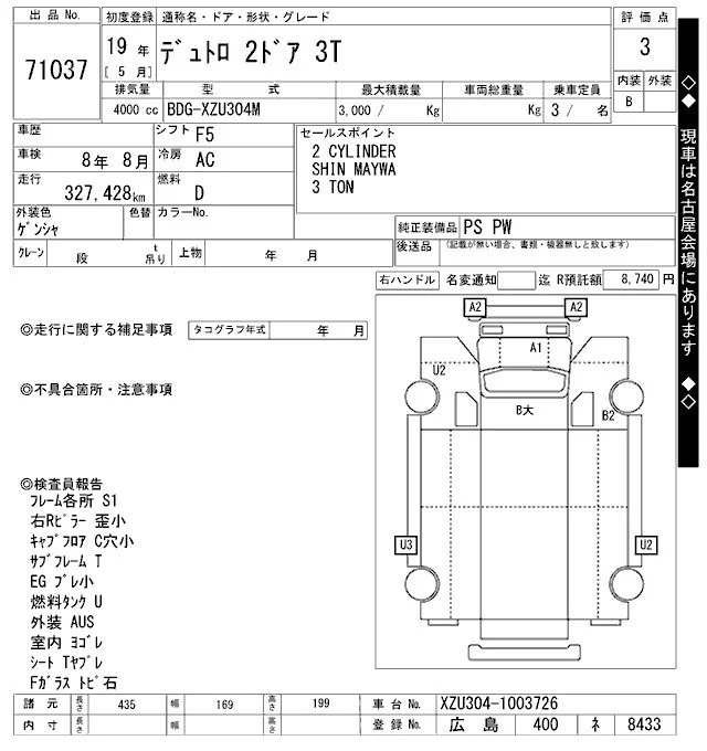 Hino DUTRO с аукциона Японии ARAI Oyama VT лот № 71037