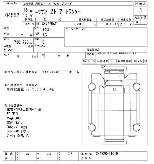 Nissan TRUCK с аукциона Японии ARAI Oyama VT лот № 4552
