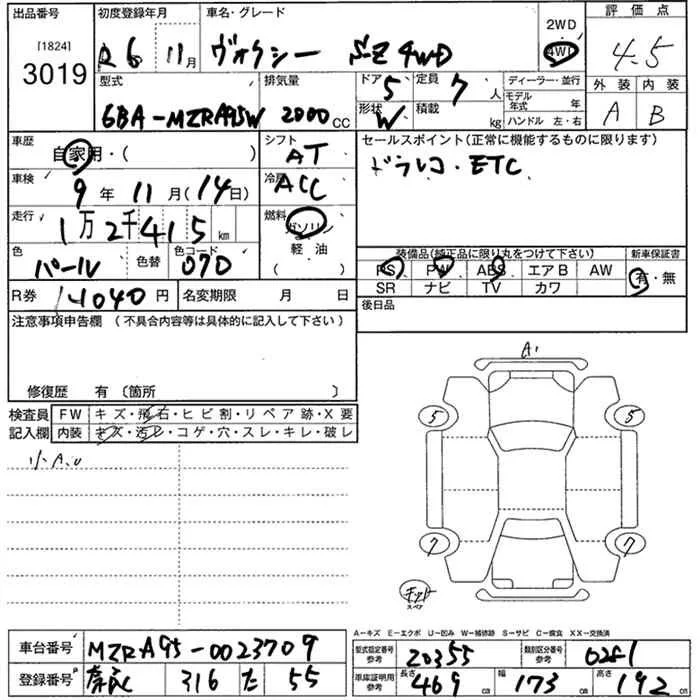 Toyota VOXY с аукциона Японии JU Nara лот № 3019