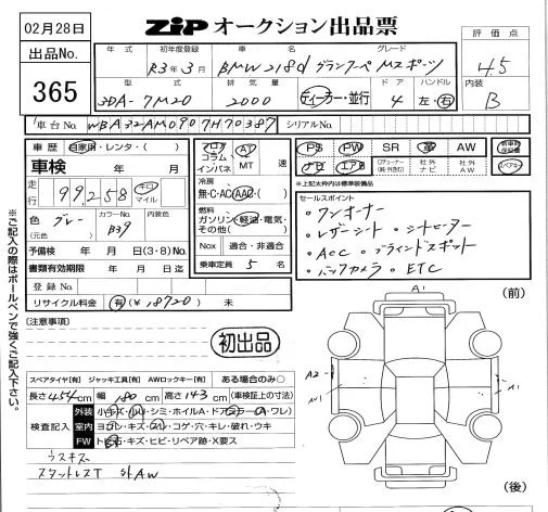 BMW 2-Series с аукциона Японии ZIP Tokyo лот № 365