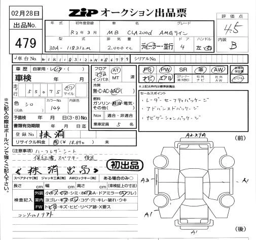 Mercedes-Benz CLA CLASS с аукциона Японии ZIP Tokyo лот № 479