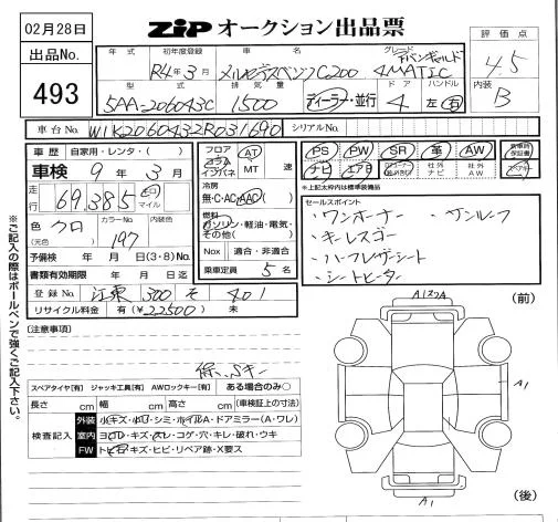 Mercedes-Benz C CLASS с аукциона Японии ZIP Tokyo лот № 493