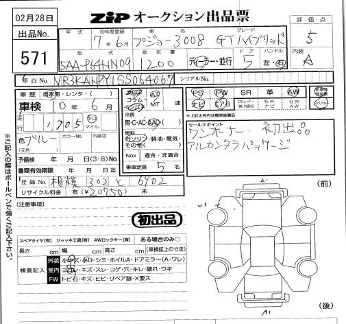 Peugeot 3008 с аукциона Японии ZIP Tokyo лот № 571