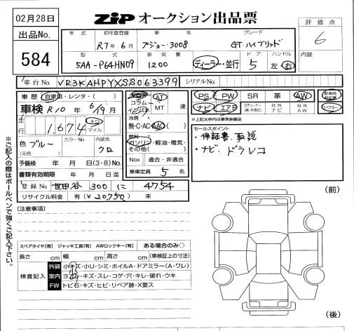 Peugeot 3008 с аукциона Японии ZIP Tokyo лот № 584
