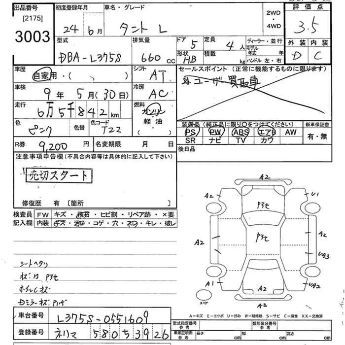 Daihatsu TANTO с аукциона Японии JU Tokyo лот № 3003