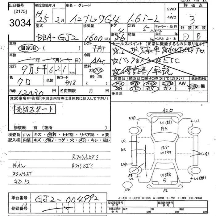Subaru IMPREZA G4 с аукциона Японии JU Tokyo лот № 3034