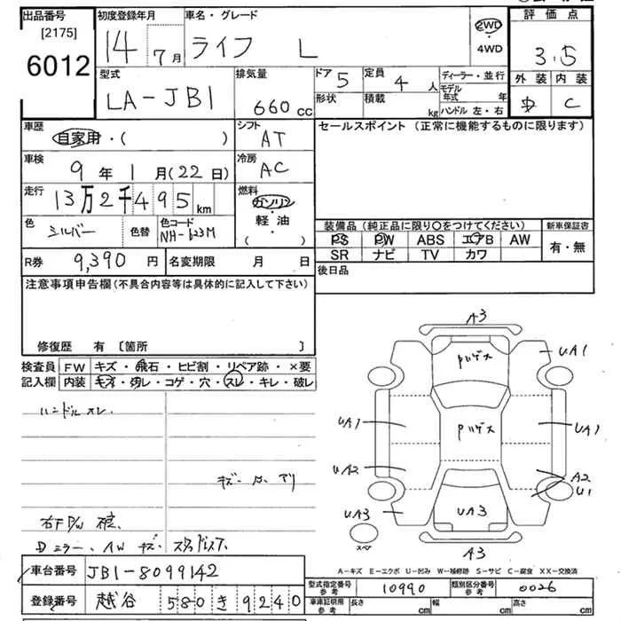 Honda LIFE с аукциона Японии JU Tokyo лот № 6012