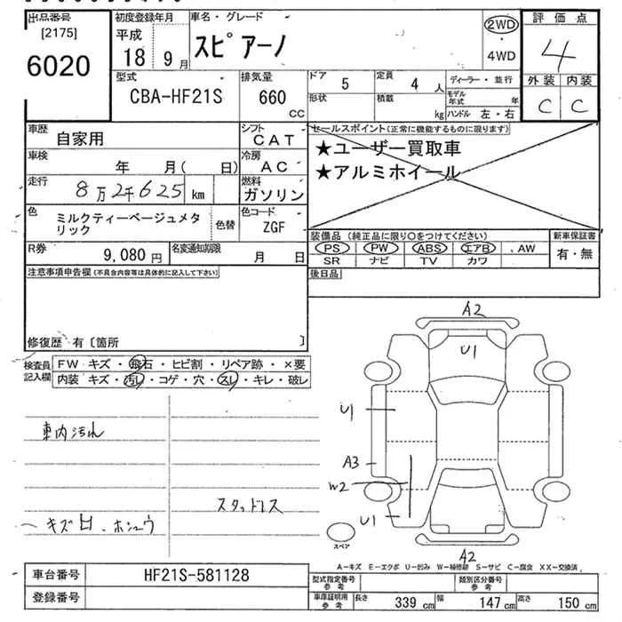 Mazda SPIANO с аукциона Японии JU Tokyo лот № 6020