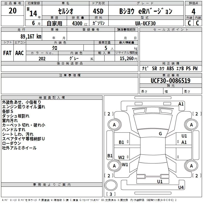 Toyota CELSIOR с аукциона Японии TAA Kinki лот № 20