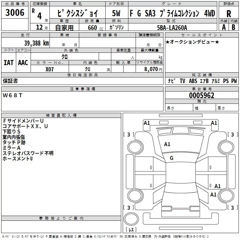 Toyota PIXIS JOY с аукциона Японии TAA Kinki лот № 3006