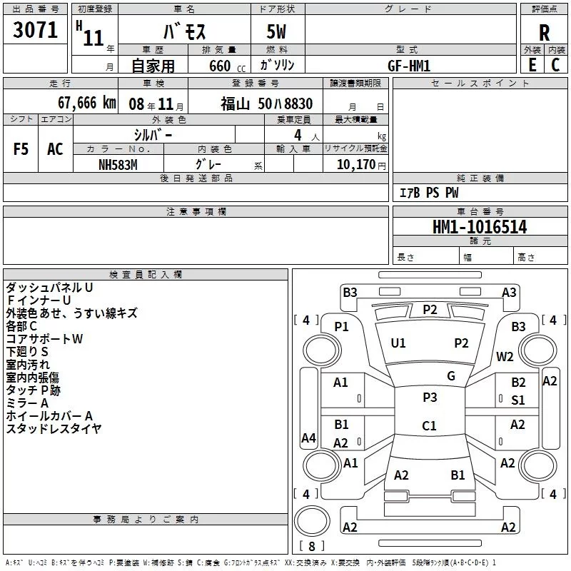 Honda VAMOS с аукциона Японии TAA Hiroshima лот № 3071