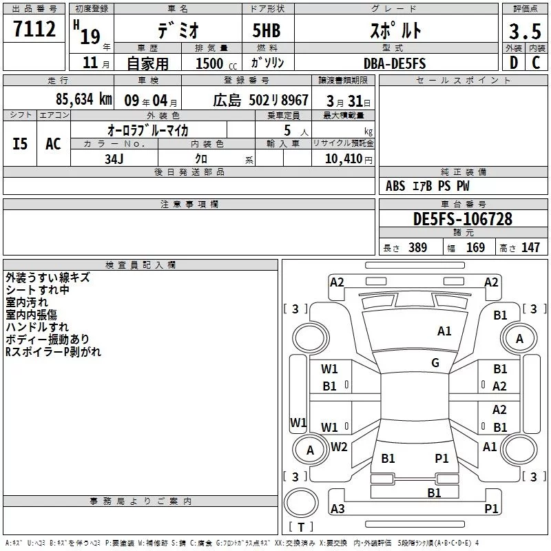 Mazda DEMIO с аукциона Японии TAA Hiroshima лот № 7112