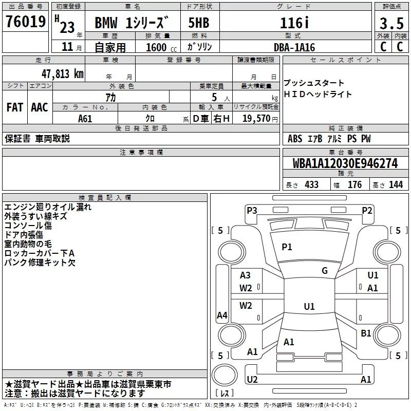 BMW 1-Series с аукциона Японии TAA Kinki лот № 76019