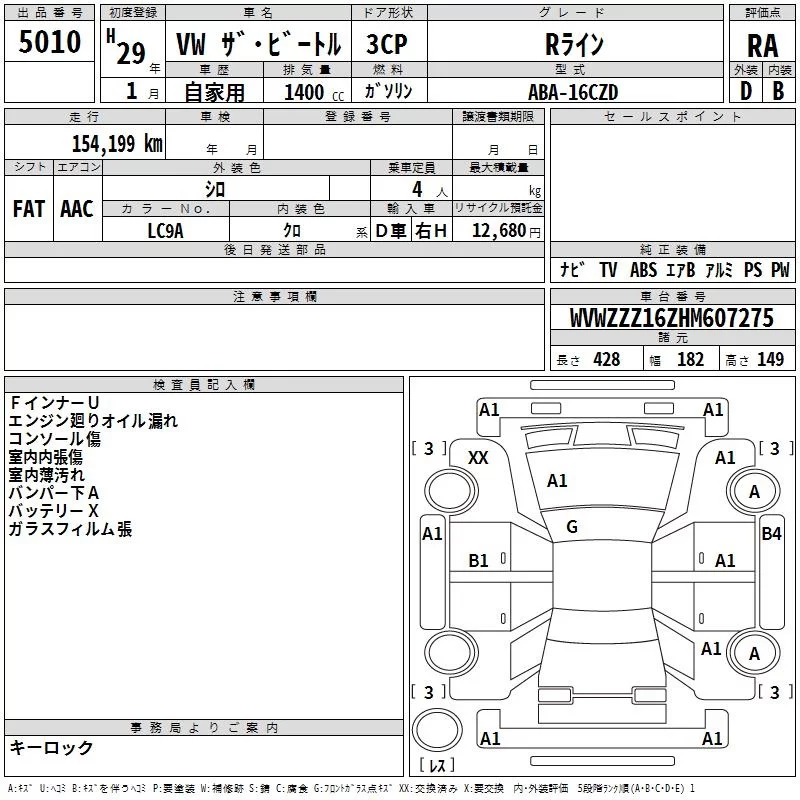 Volkswagen THE BEETLE с аукциона Японии TAA Hiroshima лот № 5010
