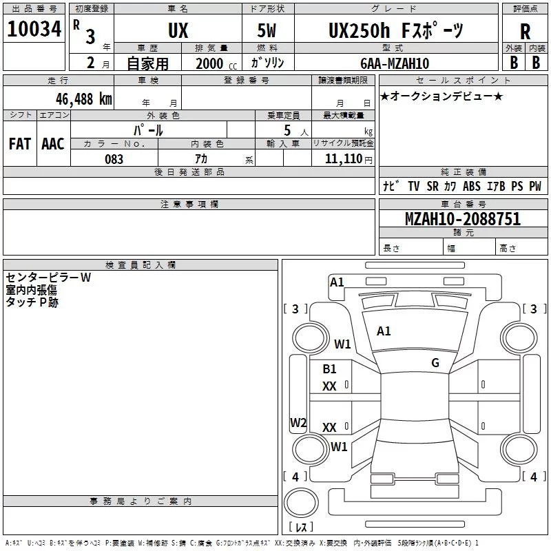 Lexus UX с аукциона Японии TAA Kinki лот № 10034