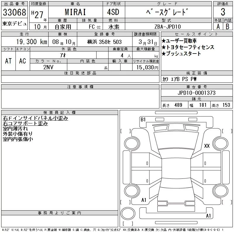 Toyota MIRAI с аукциона Японии CAA Tokyo лот № 33068