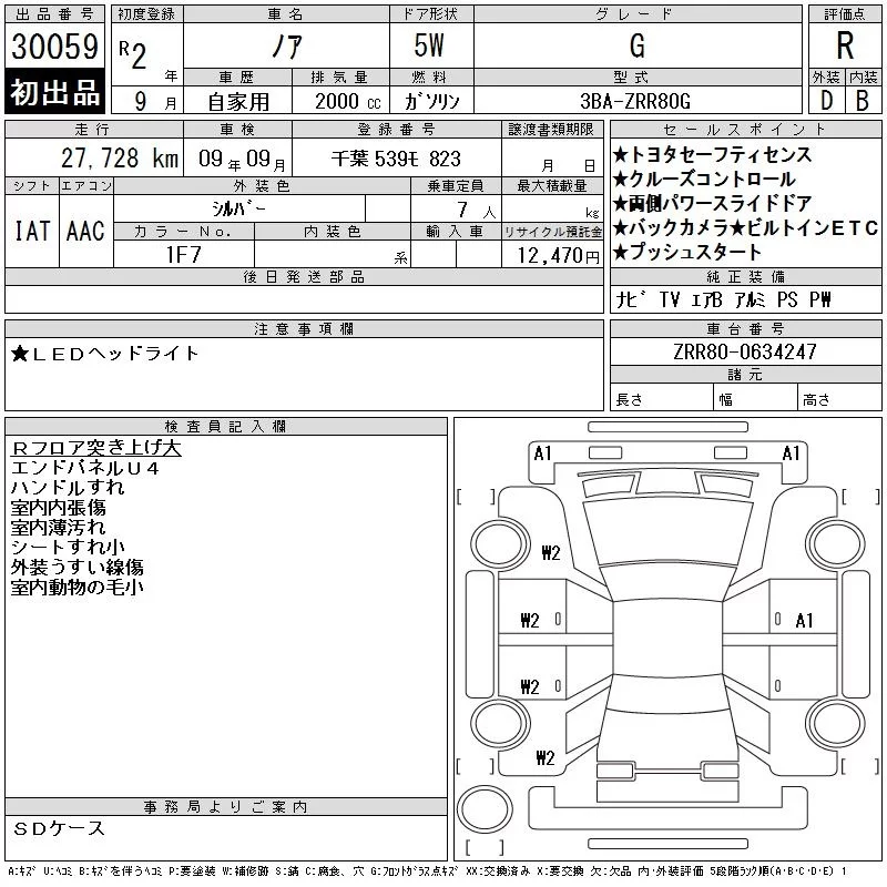 Toyota NOAH с аукциона Японии CAA Tokyo лот № 30059