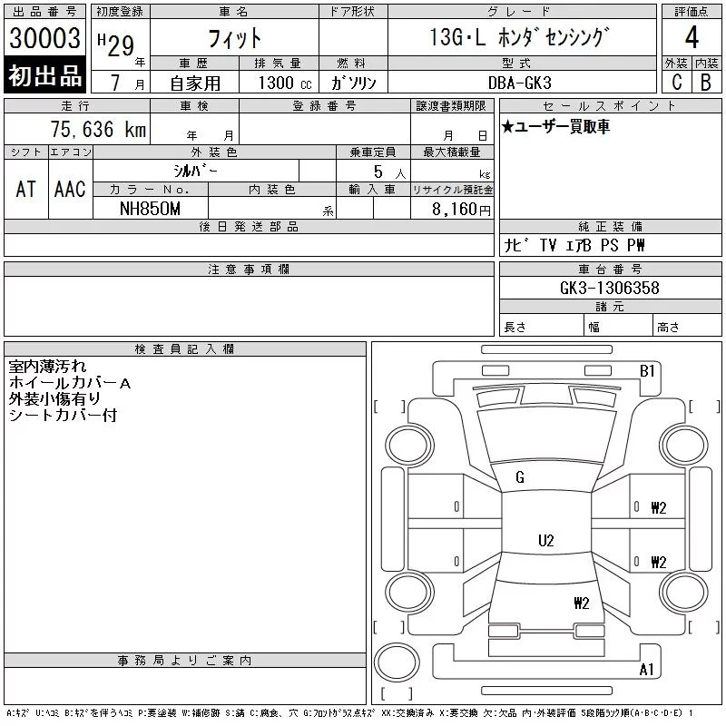 Honda FIT с аукциона Японии CAA Tokyo лот № 30003