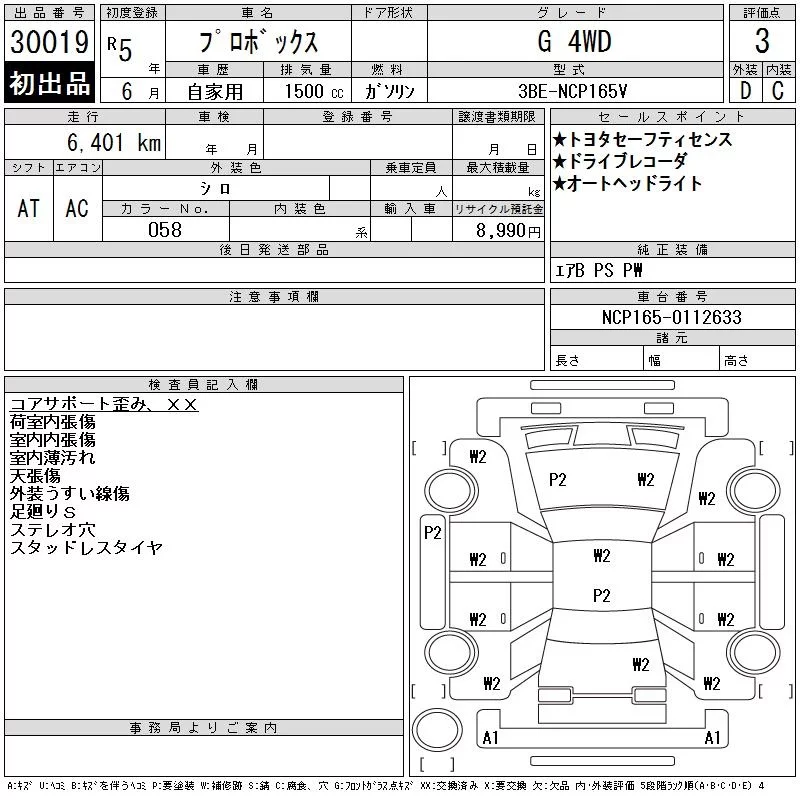 Toyota PROBOX с аукциона Японии CAA Tokyo лот № 30019
