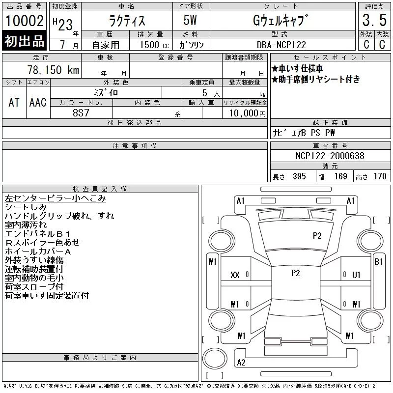 Toyota RACTIS с аукциона Японии CAA Tokyo лот № 10002