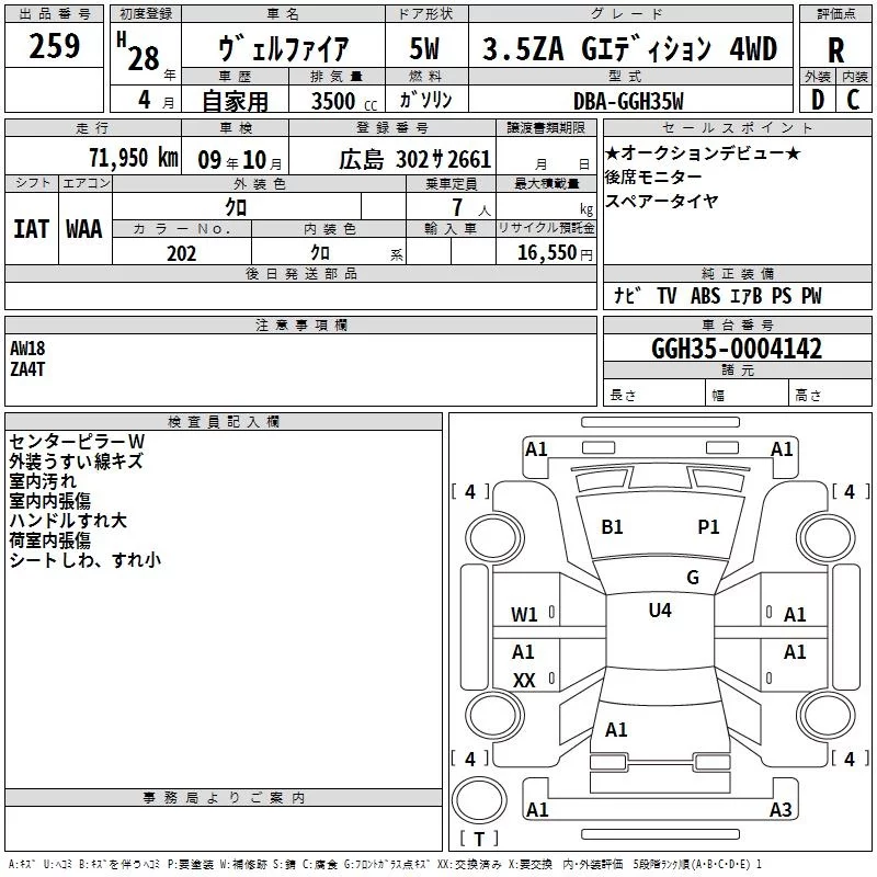 Toyota VELLFIRE с аукциона Японии TAA Hiroshima лот № 259