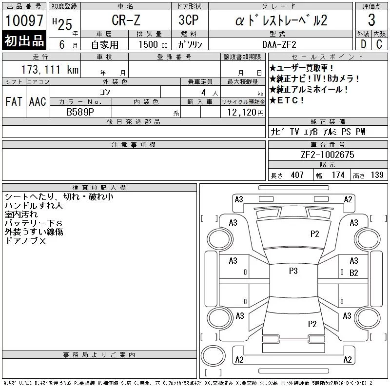 Honda CR-Z с аукциона Японии CAA Tokyo лот № 10097