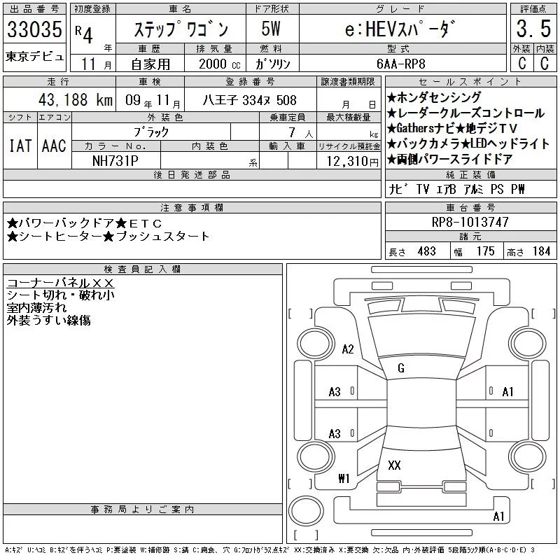 Honda STEP WAGON с аукциона Японии CAA Tokyo лот № 33035