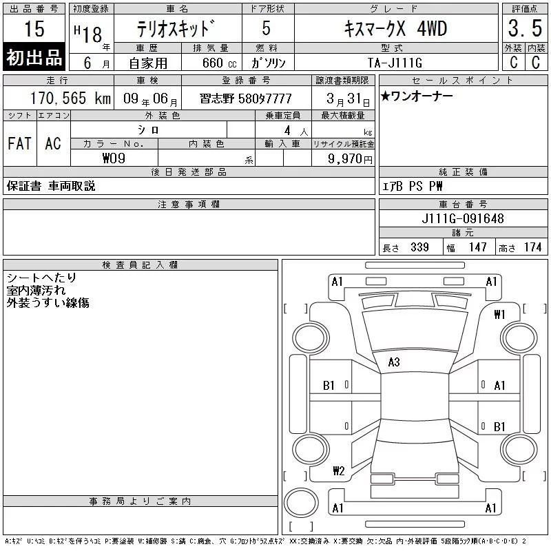 Daihatsu TERIOS KID с аукциона Японии CAA Tokyo лот № 15