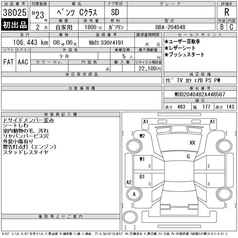 Mercedes-Benz C CLASS с аукциона Японии CAA Tokyo лот № 38025