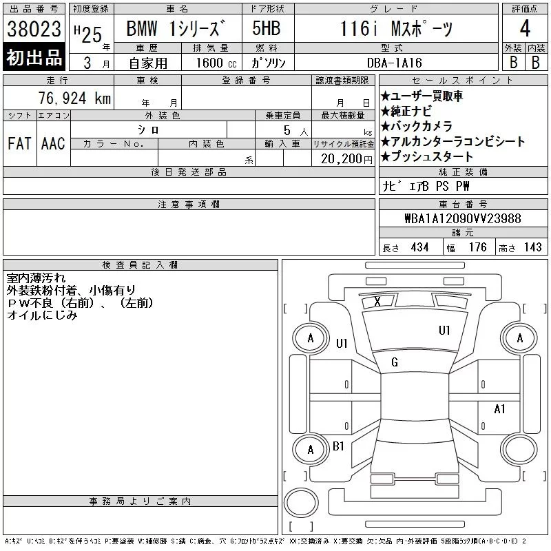 BMW 1-Series с аукциона Японии CAA Tokyo лот № 38023
