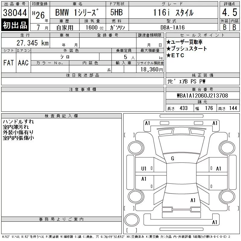 BMW 1-Series с аукциона Японии CAA Tokyo лот № 38044