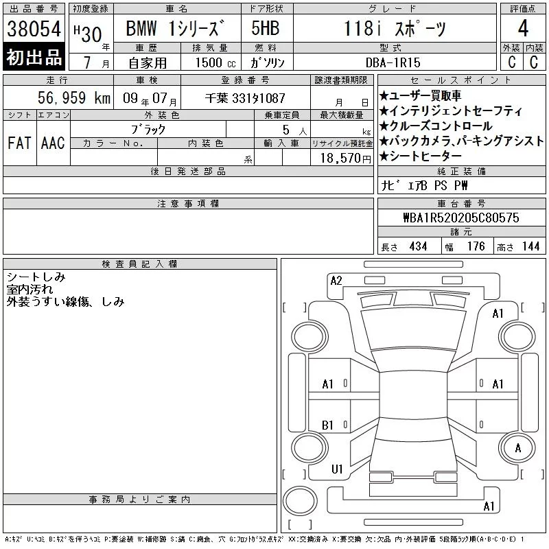 BMW 1-Series с аукциона Японии CAA Tokyo лот № 38054