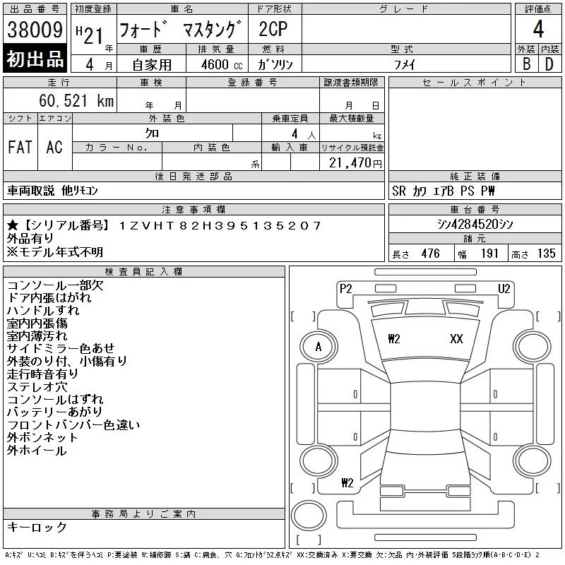 Ford MUSTANG с аукциона Японии CAA Tokyo лот № 38009