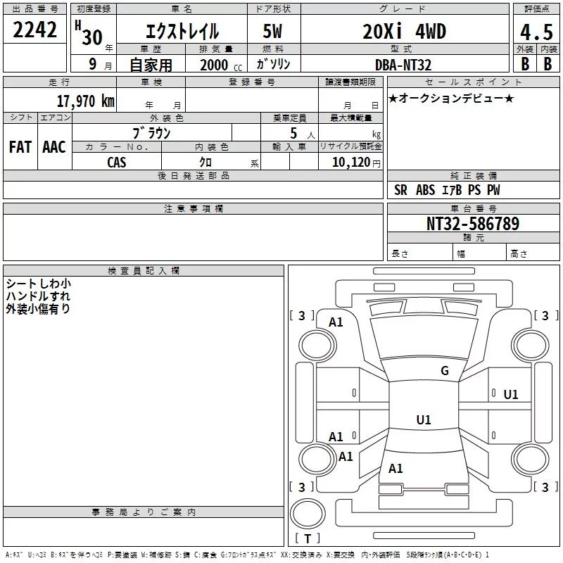 Nissan X-TRAIL с аукциона Японии TAA Kinki лот № 2242