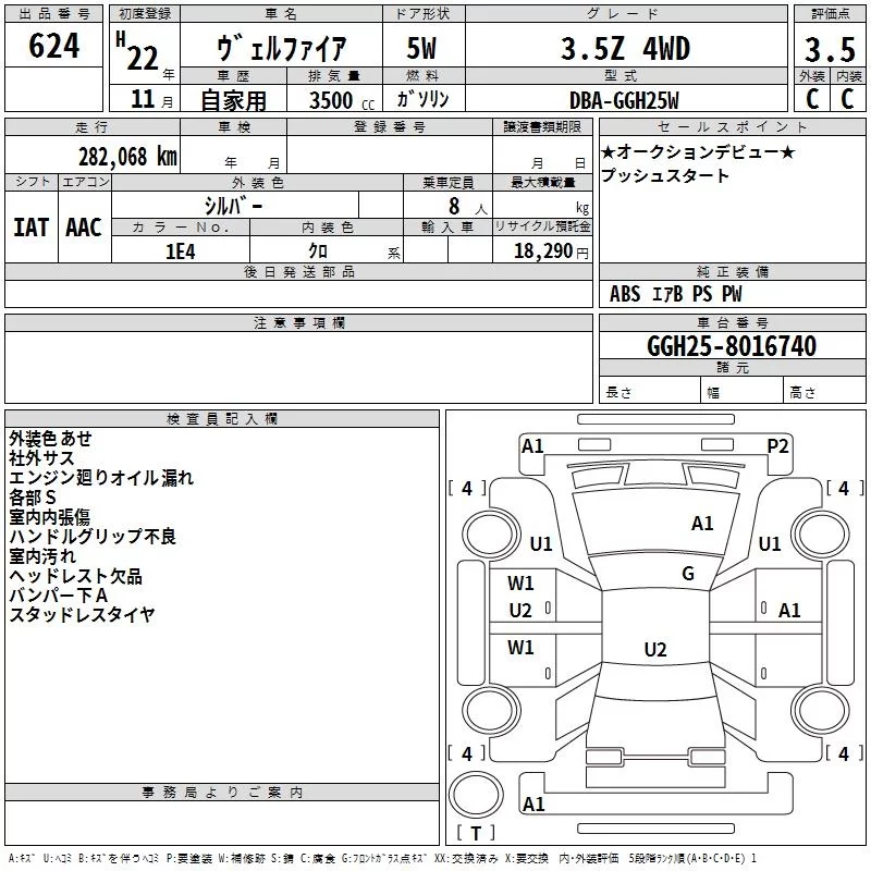 Toyota VELLFIRE с аукциона Японии TAA Kinki лот № 624