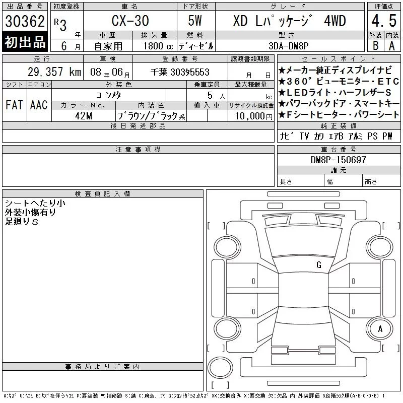 Mazda CX-30 с аукциона Японии CAA Tokyo лот № 30362