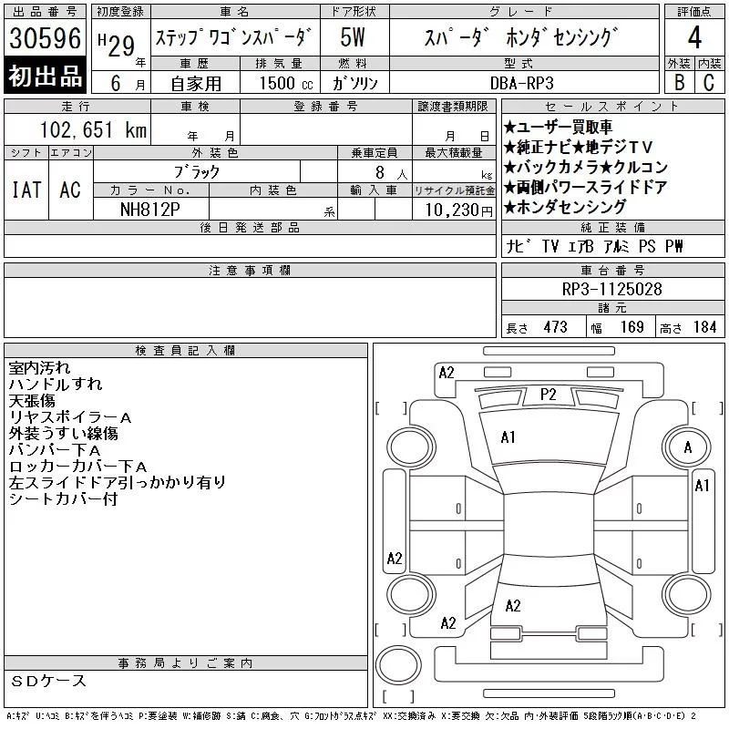Honda STEP WAGON с аукциона Японии CAA Tokyo лот № 30596
