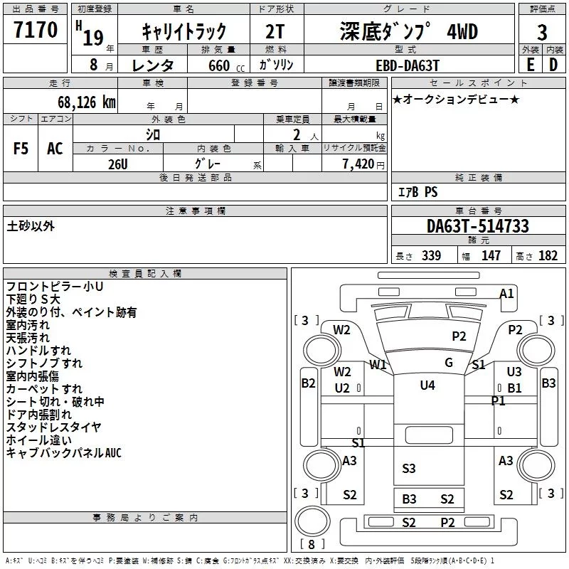 Suzuki CARRY TRUCK с аукциона Японии TAA Hiroshima лот № 7170