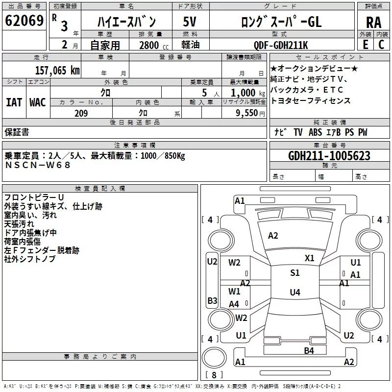 Toyota HIACE VAN с аукциона Японии TAA Kinki лот № 62069