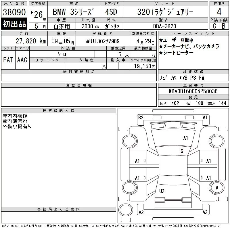 BMW 3-Series с аукциона Японии CAA Tokyo лот № 38090
