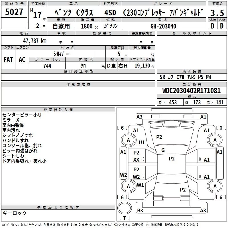 Mercedes-Benz C CLASS с аукциона Японии TAA Hiroshima лот № 5027
