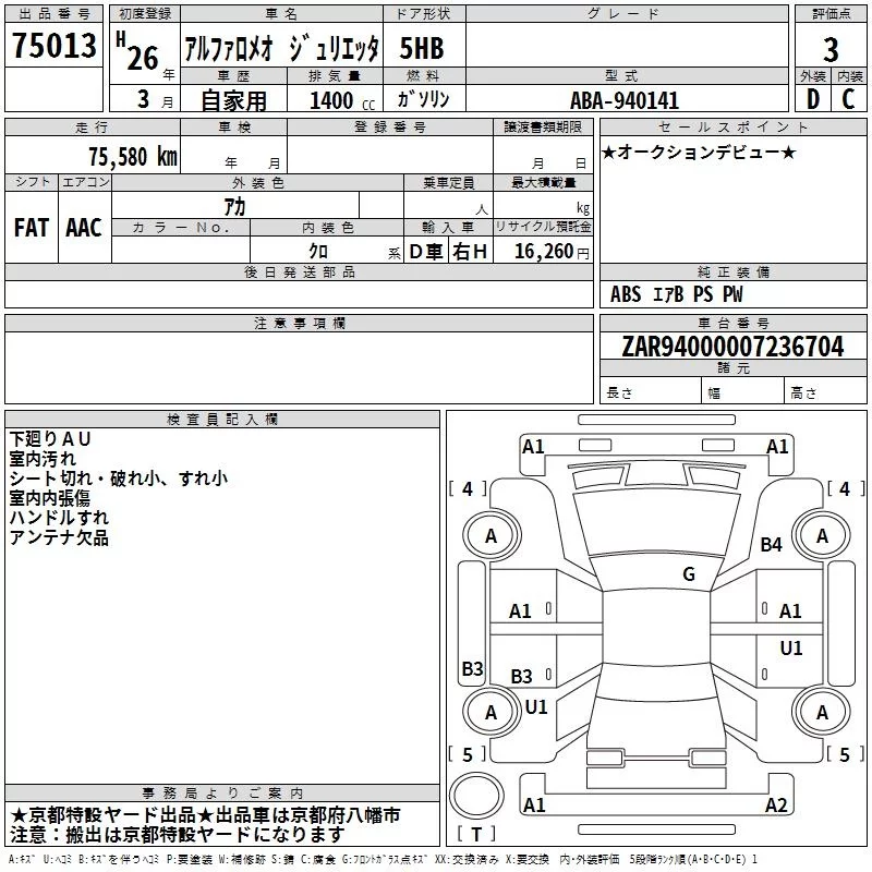 Alfa Romeo Giulietta с аукциона Японии TAA Kinki лот № 75013
