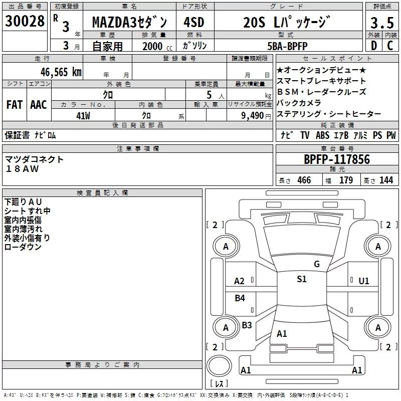 Mazda MAZDA3 с аукциона Японии TAA Kinki лот № 30028