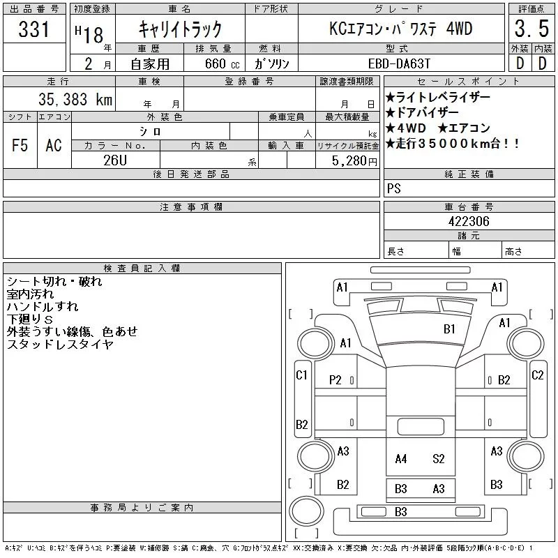 Suzuki CARRY TRUCK с аукциона Японии CAA Tokyo лот № 331