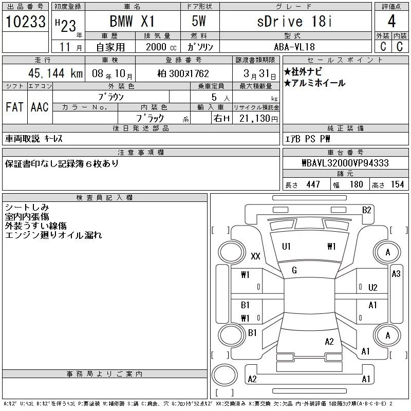 BMW X1 с аукциона Японии CAA Tokyo лот № 10233