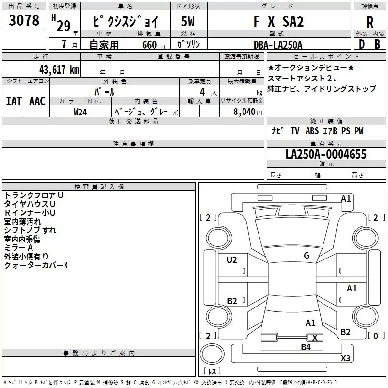 Toyota PIXIS JOY с аукциона Японии TAA Kinki лот № 3078
