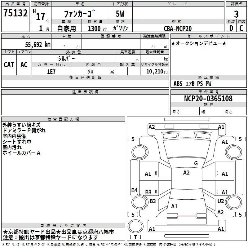 Toyota FUNCARGO с аукциона Японии TAA Kinki лот № 75132