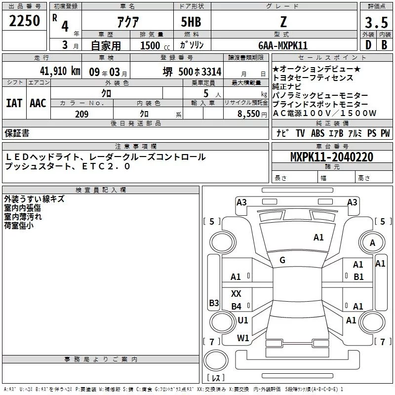 Toyota AQUA с аукциона Японии TAA Kinki лот № 2250