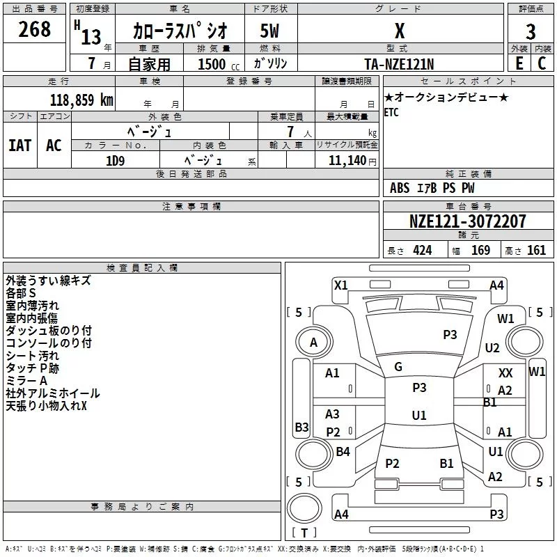 Toyota COROLLA SPACIO с аукциона Японии TAA Kinki лот № 268